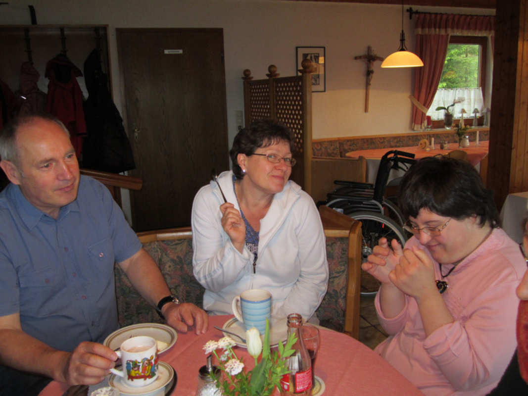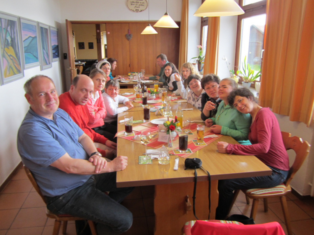 Das Wetter dort war sehr schlecht, aber wir haben trotzdem schöne Sachen machen können. Es gab ein Naturkundehaus, das wir anschauen konnten mit einem 3D Film von der Gegend dort. Es wurde auch musiziert von Josef, der eine Ziehharmonika mitgebracht hatte, und von Christa auf der Gitarre. Wir konnten auch eine schöne Wanderung durch den Wald machen, vorbei an Felsen zu einem Tier-Freigelände.
